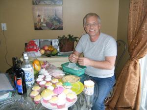 One of the fun things we did yesterday was finish up the cupcakes for the party. Leon was very helpful in helping with the decorations and well as decorating the house. I was surprised that he would help out in that way. Just goes to show what a great guy he is.