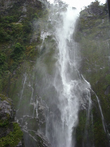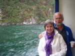 Milford Sound was awesome! We travelled about 180km from Te Anau by bus until we got to the other side of a tunnel to the Sound where we boarded a 3 masted boat for a 1.5 hr cruise. The scenery was fantastic, high peaks, water falls, an occasional albatross riding the wind currents, touching its wing tips to the water, almost like a snow boarding touches the snow for balance. We had a picnic lunch I had brought along and the boat provided a really, really good cup of tea (or coffee). Leon actually had 2 cups of coffee rather than the beer I offered. We met some nice people from Manchester who were newly retired and travelling for 3 months from AU to NZ, then off to Chile and Argentina before going home. It seems you can buy a round the world plane ticket and all you have to do is make sure your mileage is not exceeded when you fly. I have to look into that.