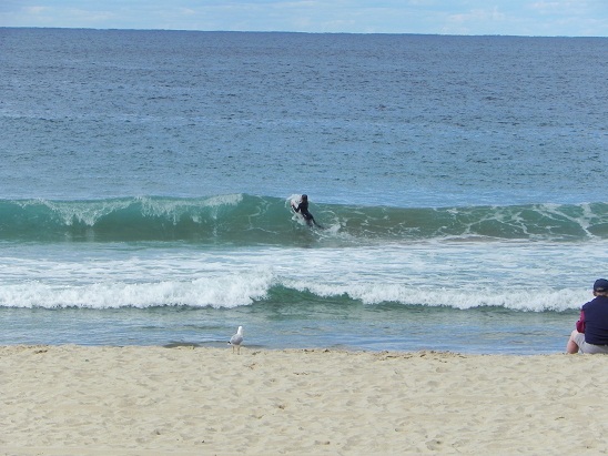Yesterday, on the way here, we stopped in a town called Kiama, right on the ocean. It is famous for its blow hole. As we drove into town, Leon noticed the school back onto the beach where surfers were practicing. I am wondering if I can arrange an exchange here next time. It’s school holiday in this state as well and surfing school seems to be the equivalent of our ski school for spring break. What a neat way to keep your kids in shape. Those kids on Bondi beach must be exhausted when they get home each night after a day of surf lessons. Oh, and the water is getting warmer as we are heading North, thank goodness. It’s closer to what the Atlantic is like in the summer with the Gulf Stream. However, the beach sand is not boiling this time of year. I haven’t got the nerve to go for a swim yet.