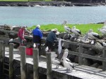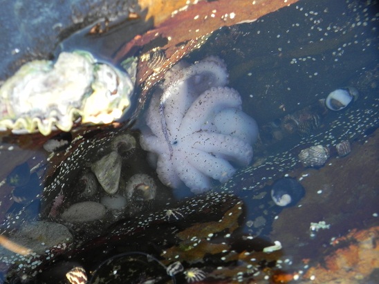 On the way to Sydney, we stopped the day before in a quaint town called Mollymook. It was a great beach, crescent shaped, where we put our camp chairs down to read a little. But the lure of walking on the beach and checking out what people are fishing for was too strong, so we walked over to the rocky shelf where Leon found a squid hiding in the cracks. I have to tell you that the sand on the beaches squeaks here. Leon says it barks. The locals say all beaches are noisy. That’s the first time I’ve ever heard the beach.