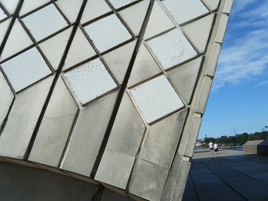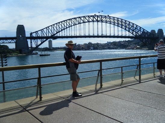 We travelled to the city via train on Wed. The best, cheapest way to see it. It was just a 10 min walk from our campsite. Over the city harbour bridge, you could see Sydney, shining in the sun. It’s a big harbour and we only visited the immediate – the Opera House, the Rocks (old town) and a quick trip to Manly for a little beach time and a pub crawl. The Opera House, it turns out, shines in the sun with what looks like some modern construction material. But it’s just covered with tiles, mat and shiny, like you might use in your bathroom. Granted, there are lots of them and in a nice herringbone pattern, nothing like the tiling job Leon and I did in Langley. And the concrete work is a masterpiece of engineering.