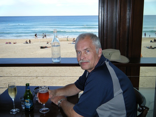 So on we went to Manly Cove for a quick beer in a German Bier Garden (nothing like Munich). Then a short walk to Manly Beach for a long walk on the sand. It is lovely, but not quite as special as Bondi Beach, in my opinion. Still, we enjoyed the walk and another cocktail at the bar right above the beach, with terrific views.