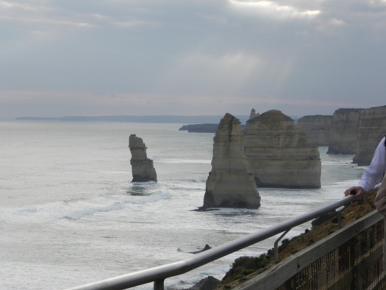 Well the drive was long and windy. The kids were getting nauseous. We did see a pod of Orcas and some great Crimson Rosellas as well as all the other wildlife we were hoping for. I even saw a fox running through the field! And a cute wallaby on the side of the road. We stopped for a nice lunch – gigantic hamburgers with the lot – which means beef, ham, fried egg, lettuce, tomato and cheese – but only Nick and Earl had those. The rest of us were more sensible. Of course, there was more nausea in the back of the car after that. It was a good thing we took the highway to get back. The Great Ocean Road is lovely but so tortuous!