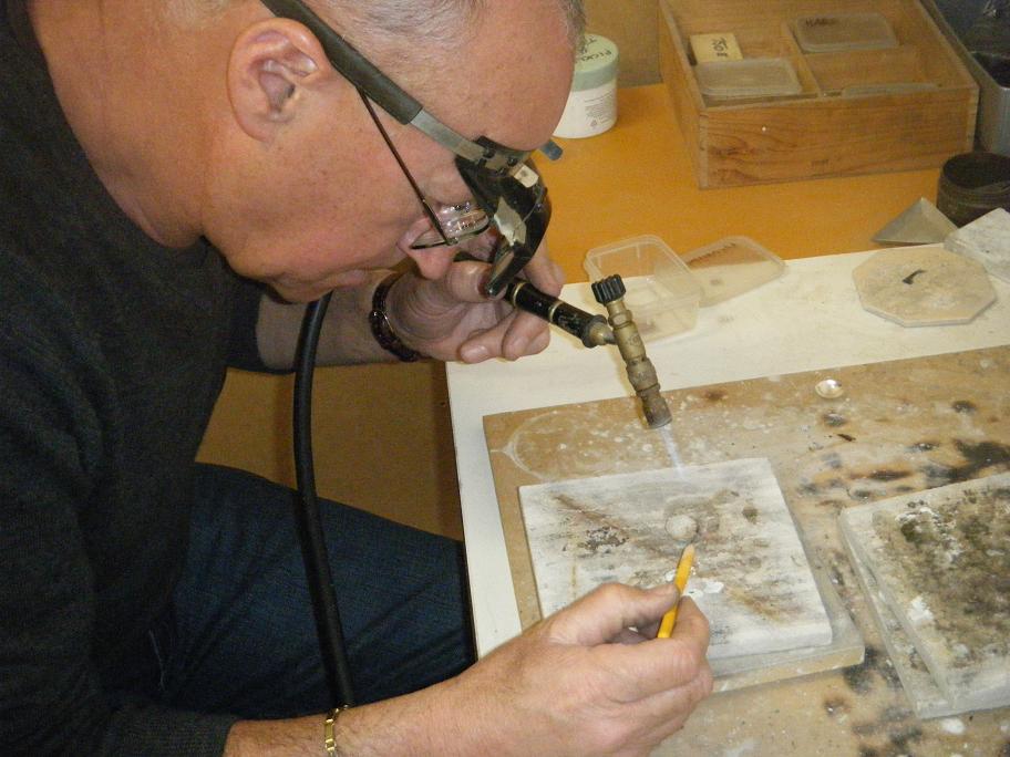My design choice is a pinkie ring with a textured top. I saw some of the textures Milton had been working on and decided that would suit me well. We had time to make the basic silver band, size very small for my little finger and we’ll continue the rest another time as Milton and Judith as off to Malaysia for a well needed rest. Poor Judith, she has a “shocking” cold!!
