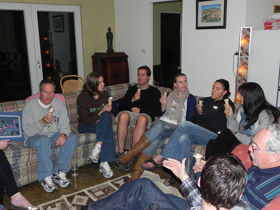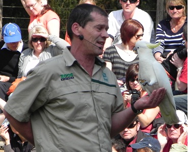 Anne Marie, Catherine and Naomi at the Sanctuarycycling groupfalls at damice cream for dessert at the pizza partybaby wombatbuzzard uses a rock to crack an emu eggdingohawkkookaburrafemale parrotmale parrotTasmanian Devilvery large eagle