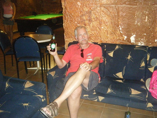 We saw quite a few things during the day – Faye’s underground home (she dug it out with 2 other women in the 60’s), Josephine’s gallery and kangaroo orphanage (where we saw the cutest joeys being fed with bottles and all), the Big Winch lookout (where we met the proverbial Chinese miner/salesman), the Old Timers’ Mine (long, interesting self-tour) and the Desert Cave hotel (where we had a drink in an underground bar).