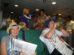 We left the beach just after 6pm and headed towards the ferry, stopping for a nice cold drink. We caught the ferry and sat with a group of guys who were obviously in the midst of a bachelor party, each one wearing a blond wig to make them look like Ellen. It seems the groom had a slight resemblance to the celebrity, so that was theme of the day. By the time we got off the ferry, it was dark and I was cold and tired (spectator sports like surfing are really hard work). Leon whisked us into a taxi and we were back at the hostel in no time, ready for a hot shower and a nice hostel-cooked steak dinner. Yum!! Bedtime was sometime between my last bite of steak and my last visit to the toilet.