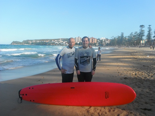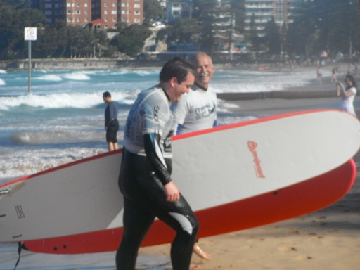 After a lunch of fresh salad, we took the long walk towards the harbour to catch the ferry to Manly beach. The plan was for the guys to take in a surf lesson while I enjoyed the ocean and the beach. Well, things went just as planned. Leon tried to get a little better at surfing and Bradyn tried his best to catch a wave, any wave, and stand on his board. He was not as successful as hoped and ended up hurting his shoulder. Sigh… surfing is a contact sport!