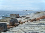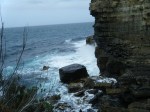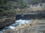 We drove to Hobart via Port Arthur today. Port Arthur is the site of the larger penal colonies of early Australia. It’s designated as a World Heritage site. But we are all cheap and jaded, so we decided not to pay for entry into the park and just moved on towards Hobart. On the way, we stopped to see the coast and a blow hole while we had lunch which consisted of peanut butter on bread. We used our trusty plastic spoons to spread the peanut butter; I had stolen those from the coffee shop at Port Arthur (actually, we did buy tea there, so they weren’t stolen at all.) Dessert was a yummy bowl of yogurt and fresh local berry puree for me. Delish, but too large. So it got added to the yogurt tub for breakfast the next morning. We are getting quite thrifty as we go, staying in hostels and eating mostly just what we can cook (or spread).