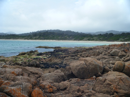 We got a wake up call at 5:50am and went to the garage deck to claim our car by 6:30am. Once disembarked, we stopped for breakfast at the first bakery we found in Devonport. A good while later, we drove south east towards our first overnight stop in Coles Bay, near Wineglass Bay, driving off road on a refurbished stagecoach road that our GPS, Bruce, decided was the best route. Honestly!! Still, we did manage to see quite a bit of road kill, most notably a very large wombat. We kept slowing down to see what the road kill might be. Leon joked that we should have a tv show called RKI: Road Kill Investigators.