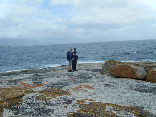 We drove west to Strahan – the south western most point in Australia (well, actually the point that is developed, because the whole south west of Tasmania is basically a giant National Park). It’s a quaint harbour town that is north of a former penal colony. Our hostel accommodation was an A-frame hut, quiet and well away from the kitchen and public areas. We took a long walk down to the harbour and saw Australia’s longest running play – a story about a ship that convicts built and stole. It was so windy and cool that blankets were provided for the audience. Leon and Bradyn were chosen, along with others, to have roles in the play. Quite entertaining!