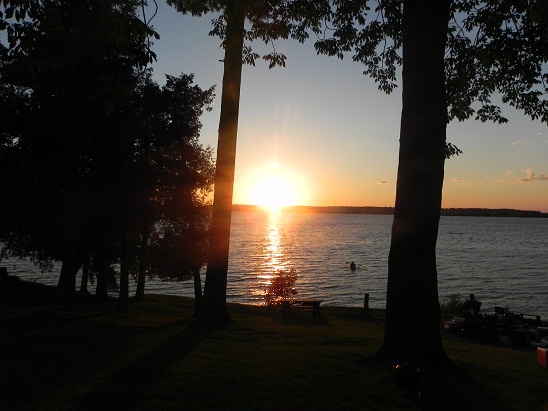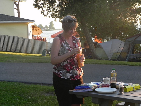 By late afternoon we figured we had better find a place to camp again.  This time we stopped at Coles Creek State Park, just west of Massena NY.  It looks like a newer park with a beach, lots and lots of camping spots and a good view of Morrisburg, ON.  We had a great dinner of bbq steak and finished the evening with a glass of wine, sitting on the waterfront, watching the sunset.  There were fireworks at some point, but we could only hear them.  Oh well, it was a great first trip with our new Roady!