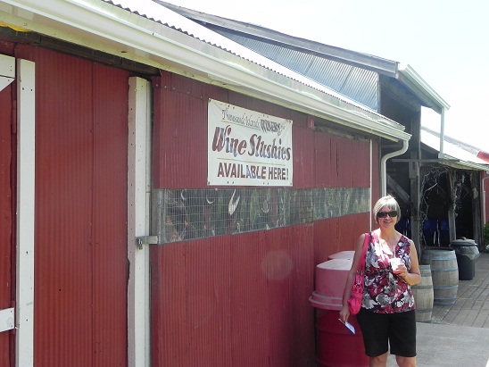 We drove down hwy 16 to Prescott, where we turned onto hwy 2 and the 1000 Islands parkway. The road from Prescott to Brockville is full of old stately homes and newer properties with a great view of the river. Once we got over the bridge to the US, we turned off the interstate to continue our drive along the river from the south shore. We spotted a sign that advertised wine slushies, so we just had to investigate. We came across the 1000 Island Winery where we bought a $3 wine slushie and I tried 5 local wines for free. The only one worth remembering was the Pinot Grigio. The rest were either too oaky or too sweet. Leon liked the slushie though. We even got the recipe: