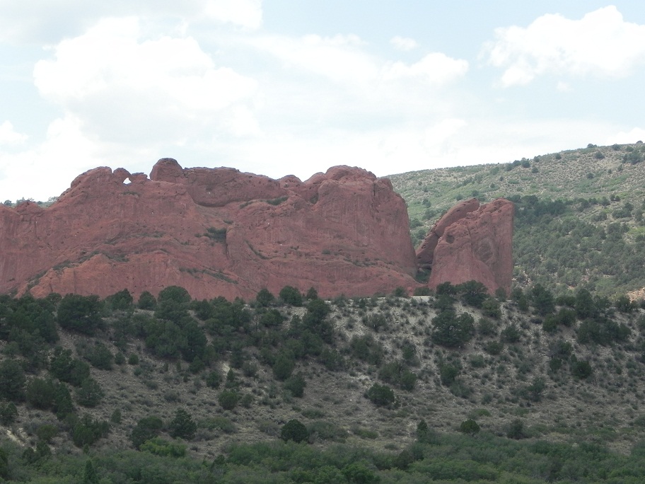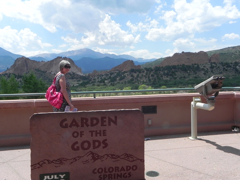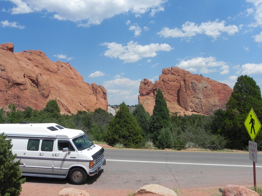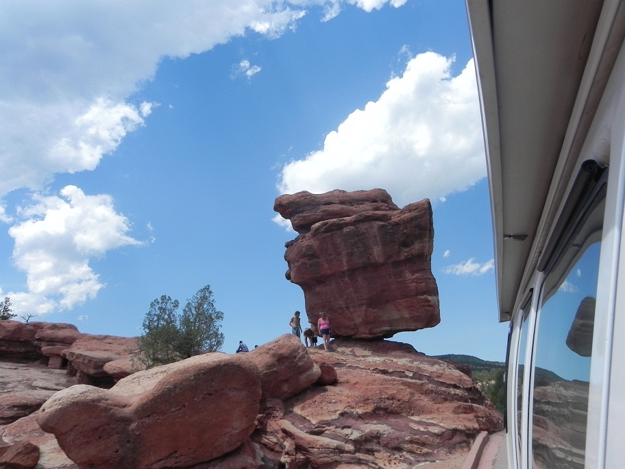 We arrived here after driving south-west for about 4 hours with many stops on the way. We left Matt’s house in north east Denver around 11am and went in search of a distillery. Leon has been investigating a new business idea so we stopped at Downslope Distilleries and had a great chat with the owner. I had a wee dram of the spirit but it was a bit early in the day to fully appreciate its flavour. From there we continued on to the Gardens of the Gods, a large group of rock formations that reminded me in some ways of Uluru and the Olgas. The area is located just past Colorado Springs which has suffered from major forest fires lately. It was not unusual to see signs thanking firefighters for saving their home.