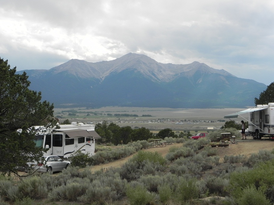 As we drove further south west, we started to really see the Colorado we had invisioned, all green and mountainous. The most impressive view came as we drove down from a high pass (over 10,000 ft) into this large high plain – a huge area where you could imagine Plains Indians living centuries ago. Today, there are a few fences, some cattle, horses and the odd house. And on the horizon, another chain of mountains with even higher peaks. So this is where we stopped for the night. We couldn’t think of a more beautiful setting.