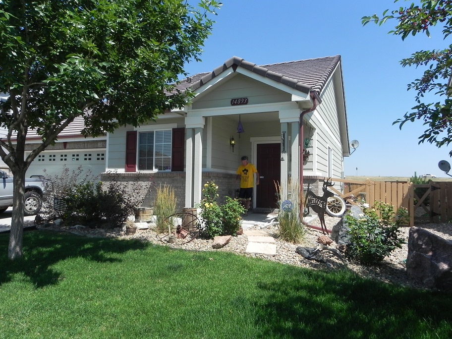 When we drove into Denver on Wed, we arrived from the east where Colorado is quite flat. Leon and I had a bet going as to when we would see the mountains. He lost, but really, it was only about 20 miles out that I finally spotted the shadow of a peak or two. The haze and smoke from the recent fires really were apparent. We got to Matt’s house with little trouble, thanks to Bruce, our GPS. Here was another surprise. We knew Matt loves to hunt and fish and he had told us he had a few animal heads on his walls. We expected some log cabin in the woods. Instead we found a lovely bungalow with great landscaping outside and tidy decor inside – where the rooms had different themes such as the moose themed bathroom and the duck theme ensuite. Yes, there are various animal heads on his walls and a large zebra skin too. And yes, he did shoot them himself. It might sound a bit much, but it all works. Of course, the view of the mountains from his yard is great too.