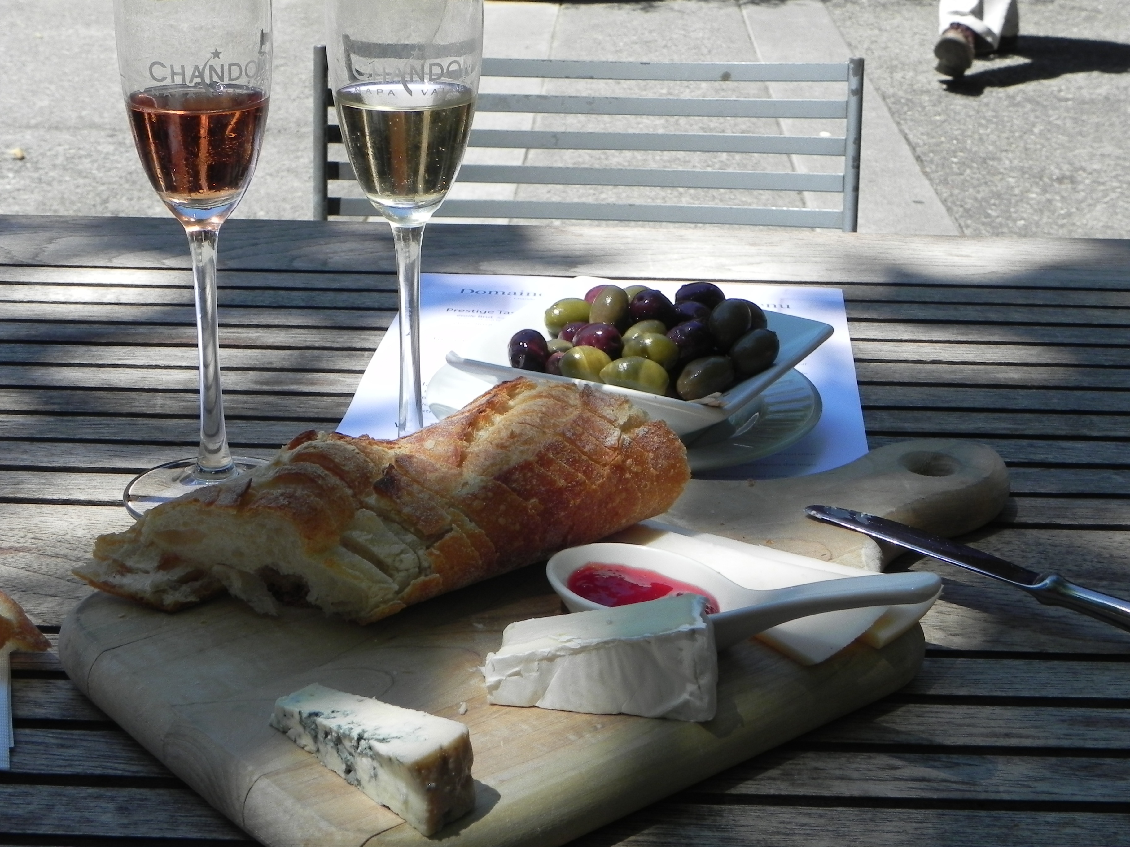 a few black olives left over from our snack at Domaine Chandon