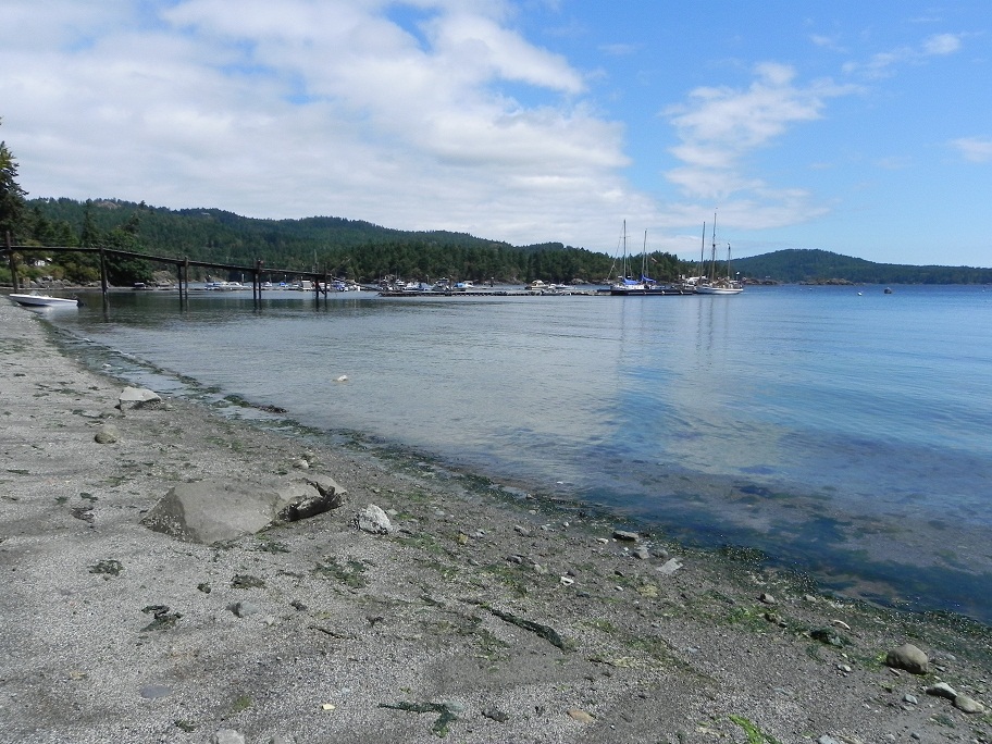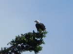 As I looked at the shoreline, I spotted a bald eagle high in a tree. On the other side of the cove, a man was lying on the rough beach, having just come into shore, two salmon waiting on the rocks under a tree. Lucky for him the seagulls hadn’t found them and tried to carry them away. His friends had gone up to the café to join up with more friends. It looked like they might be having a picnic later.