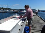 By now the sun is hot and people are about their weekend activities. I took a walk down to the dock and saw some ladies filleting their catch, trying to decide if they would have grilled salmon for dinner or simply can it and save it for later. The seals were swimming around the fish cleaning station – a mother, father and baby seal, attracted by the fishy water that’s created by the cleaning. It probably tastes like fish-flavoured kool-aid to them.