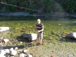We left White Rock on Sunday morning, stopping for a visit with my friend Loran in Chilliwack. It was hot. Then we drove into the mountains, following the US border for the most part, on highway 3. It is full of mountain passes and winding roads and great scenery. Mostly, it gives you a real idea of just how many mountains there are in BC. We drove past many creeks or rivers that seemed shallow, filled with people on inner tubes, floating along. You’d think the water would be too cold, but the rocks do warm it, so people have made a real sport of it. It turned out we were following the Similkameen river. The valley is one of the many wine regions of BC. We didn’t stop to try any, but we did stay the night at a campground and went to check the temperature of the river. It was a bit cold for my liking, especially after a hot day in Hanne’s pool the day before. We did stop and buy fruit and veggies along the way, as we made our way to the Osoyoos area. Lake Osoyoos is similar to lake Okanogan to the north. It sits below some high peaks in an area that is considered a desert region of Canada. It’s also a noted wine region. We moved from that area to Trail.