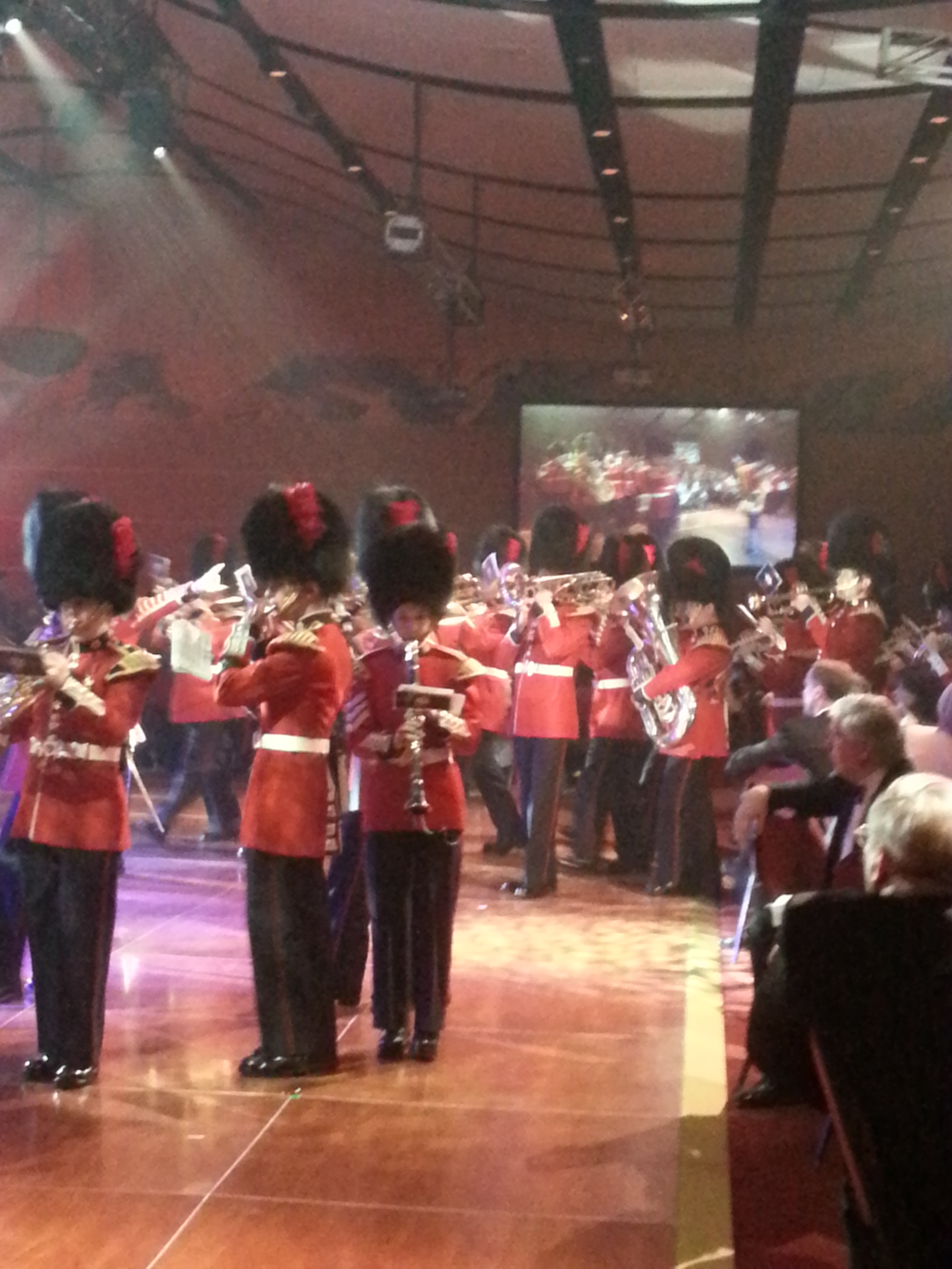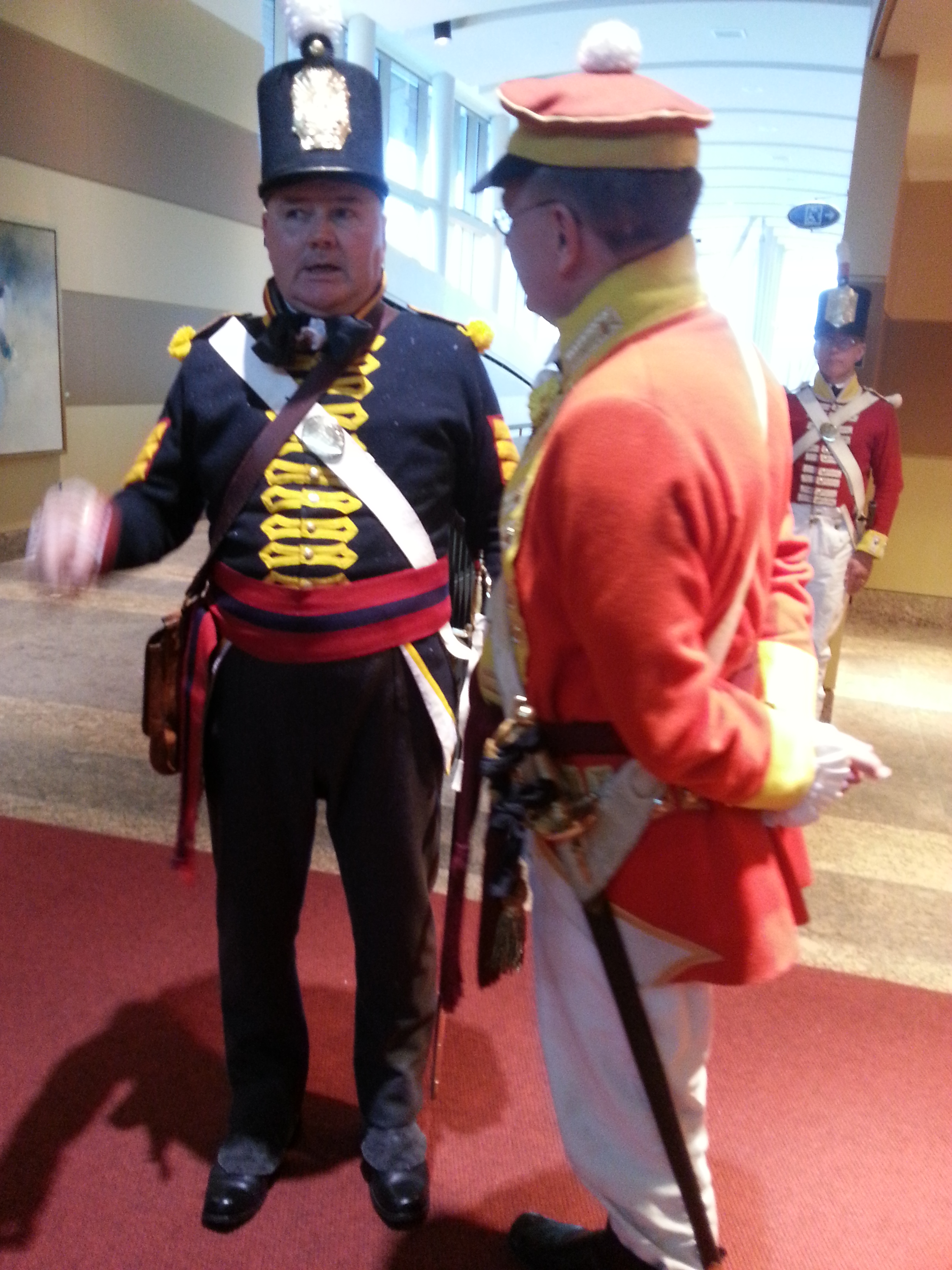 The main show then started with re-enactors, singers in period costume, the Cameron Highlanders of Ottawa Pipes and Drums and the Regimental Band of the Governor General’s Foot Guards (under the direction of our friend LCol Fran Chilton-McKay). It’s hard to describe the pageantry of such an evening. For people who’ve never attended such a formal military celebration, you might be in awe of all the tradition and symbolism that goes into it. Or perhaps it’s not something you value. At any rate, I tried to get some pictures of the musicians, but it’s hard not to show people’s faces, something I don’t like to do without their permission. Suffice it to say, you can at least get an idea of the detail of their uniforms.