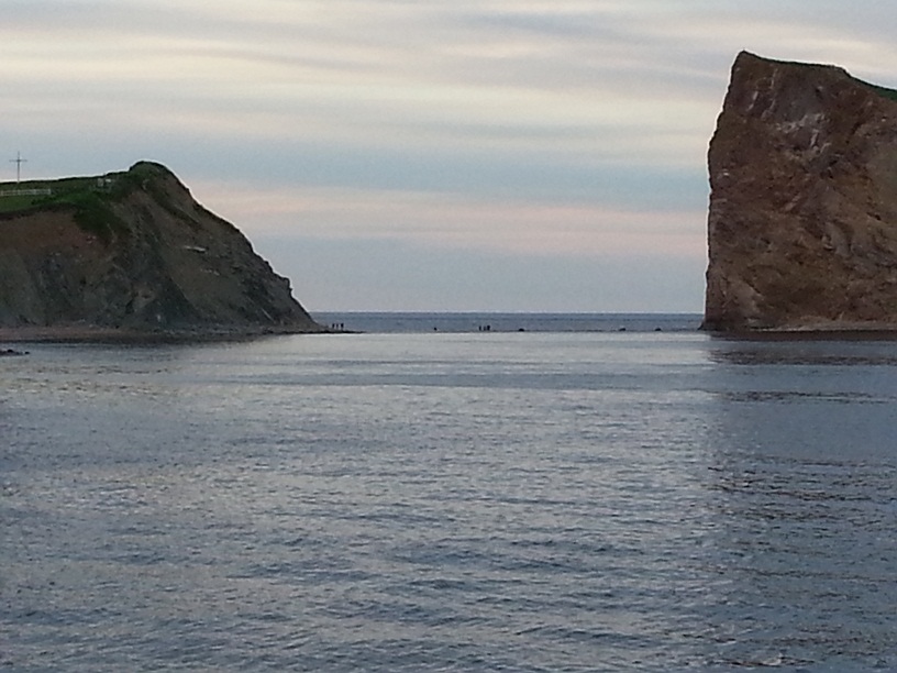 In the evening, we went down to the wharf in Percé to see the low tide. I thought I remembered seeing people walk across a sand bar to the Percé Rock (which they are not supposed to do anymore, by the way). As we approached the dock, we could see quite a few people at the other end watching the fishermen take in their catch of mackerel. There was a young woman who was cleaning the fish very quickly and expertly. I commented as such to her and asked her about mackerel, how it’s prepared, what it tastes like. She answered me and offered me a fish to take home. Embarrassed to decline and curious to try it for myself, I grabbed a paper napkin from my pocket (old mom habits die hard) and wrapped it around the proffered mackerel, which was nicely gutted and headless. I walked back to the campground holding the mackerel like an ice cream cone, making stupid jokes all the way.