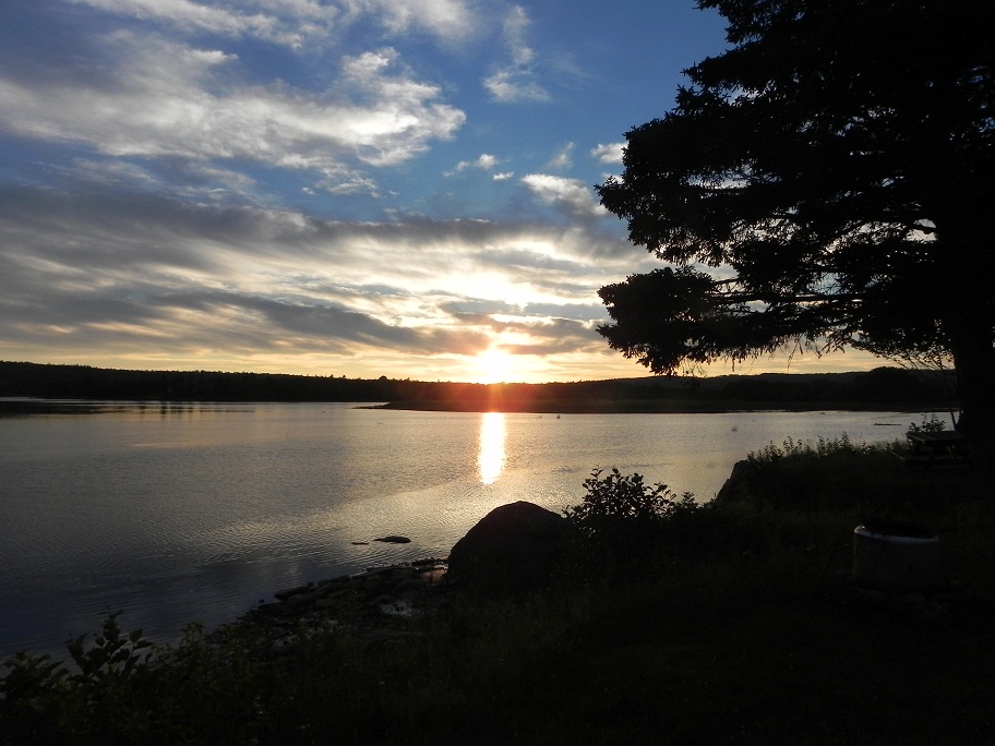 We found our camping spot and were delighted to see we were the only ones in the campground. We picked the best vantage point for the sunset, unpacked and I made chicken burgers while we sipped our wine (or cider) and enjoyed the quiet and the view. The sunset was magnificent but the entertainment was better. We watched an osprey dive for his dinner a few times. The next morning, as we had our tea and packed up, we watched a kingfisher dive for breakfast. That’s how lucky you get when you pick camping spot number 13 on July 13, 2013!