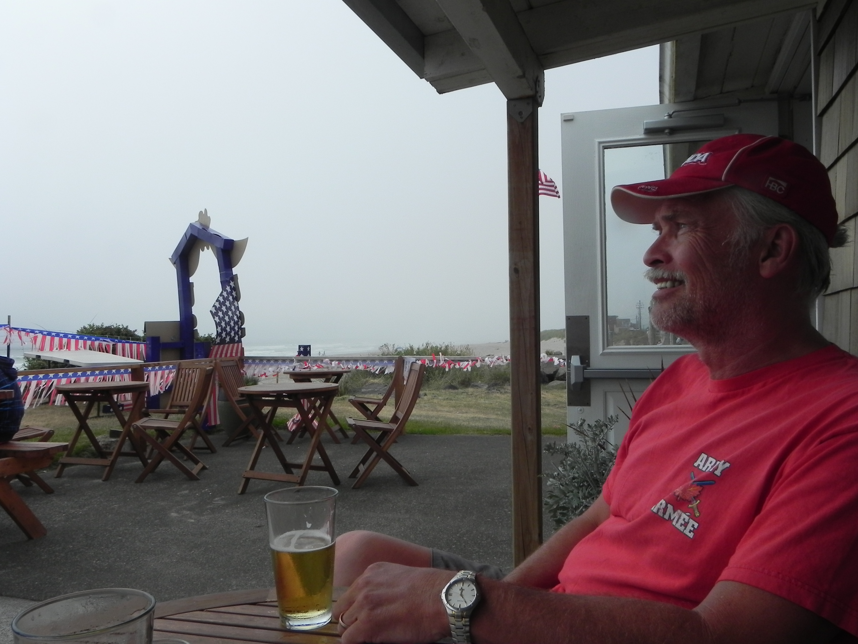 Sitting on the patio of the Sand Dollar, we ordered a much-deserved beer, having driven another 12 hours that day. The patio overlooks the ocean but a bit of a rainfall seemed to be coming in, so we couldn’t see the full beauty of the ocean at that point. We asked about Bryan and were told by the hostess that he was indeed around the restaurant somewhere. It was a busy day and they were a bit short-staffed, so it took a second request to see the boss.