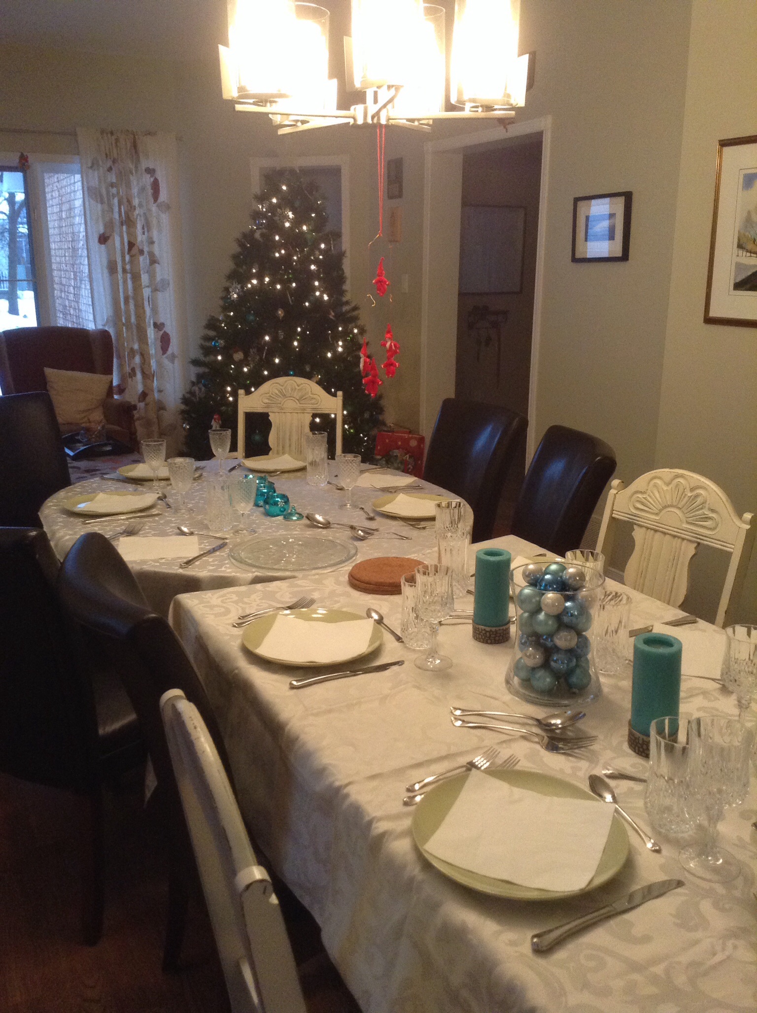 I have to say, for a woman who hates Christmas food and generally would rather avoid Christmas fanfare, I think I did pretty well. I’ve been ill for much of the month, as seems to be my usual state in December, so putting on 3 big events (thankfully with the help of my husband and/or son) has been a major accomplishment. I know my children were especially happy with Christmas this year as it was more like the Christmases they remembered as children. The Christmas morning fun was also special this year..Ariane now lives with Nick, so it was great to see them arrive on Christmas morning (read noon), still in their pajamas, when we sat and opened our stockings and presents while drinking hot chocolate (or coffee). That was followed by the usual eggs Benedict and the “family Christmas movie”. This year’s pick was Guardians of the Galaxy, sufficiently light and funny, to entertain all of us.