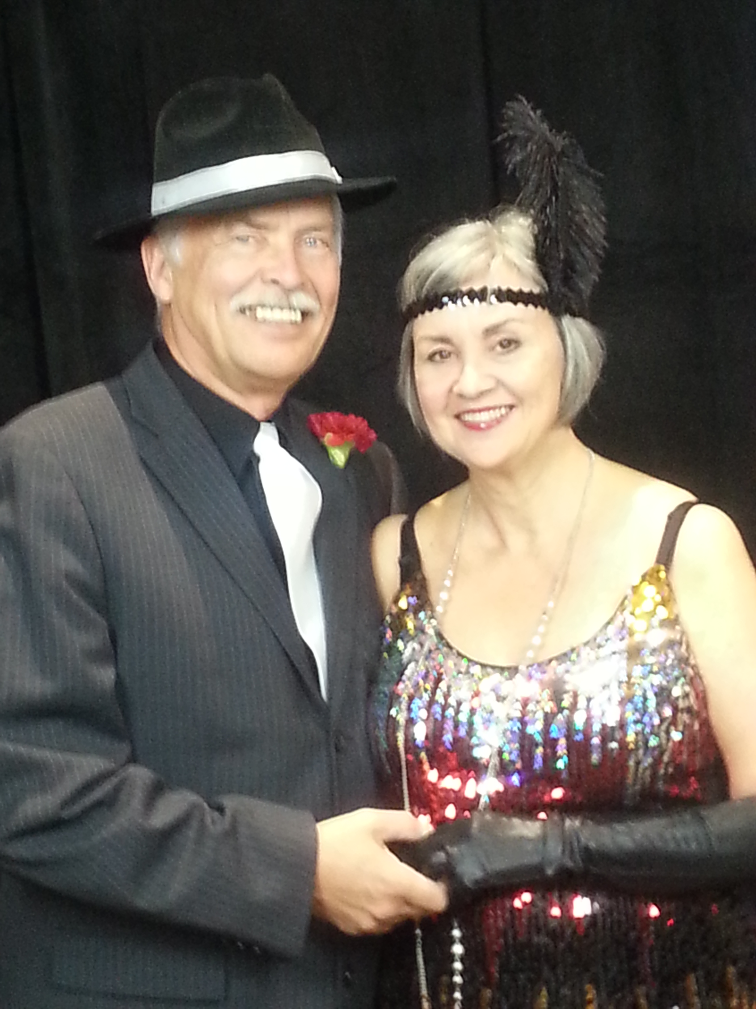 Last Friday, Leon and I attended the Langley Pos-Abilities Masquerade Gala at the Cascades Casino Resort. What an event! We arrived to check in and were asked to have our photo taken for a souvenir later. Our costumes for the evening were me as a flapper and Leon as my gangster husband. We then entered the beautifully decorated ballroom area, all done in medieval themes complete with music from the Langley Community Music School String Quartet.