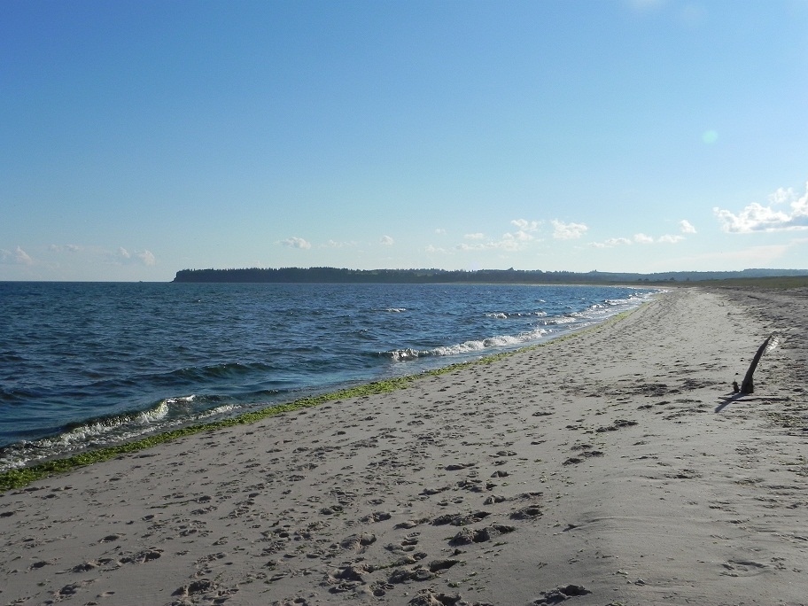 beach at red point PEII took a walk on the beach while Leon did some reading.  It’s true, I’ve been using my teacher voice on him, encouraging him to hit the books! As I arrived on the beach, I was approached by an RCMP officer who asked if I had seen a dead seal washed up on the beach.  Intriguing!  So I just had to walk as far as I could to see if I could spot that seal.  No luck, but I did get a picture of the dead gannet, poor thing.  I walked for about 1.5 km until I reckoned I was all alone on the beach and figured I’d better start back the other way.red point