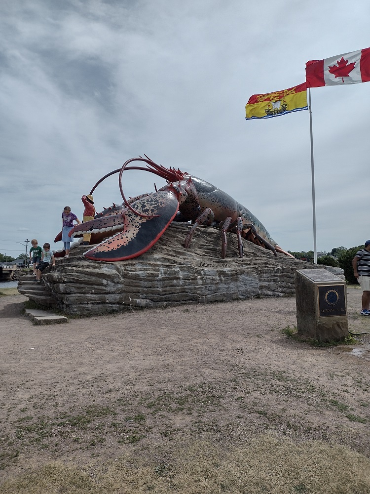 If you haven’t guessed it, we’ve been eating lobster since we got to Gaspésie last week. Each day, we couldn’t resist buying lobster for our dinner, except today when I insisted Leon have a lobster roll in Shediac, the lobster capital of NB. It was far overpriced and not nearly as satisfying as the lobster and butter dinners we’ve been enjoying in our condo on wheels.