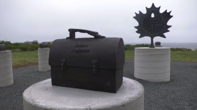 I walked up to say hello and laughed that I thought he was a ghost, then asked if he knew any of the miners whose names were on the memorial.  He answered “Yes, I’m one of them.” The memorial is made up of 12 posts with lunch pails on them, each bearing the name of a miner who died during an explosion on 24 Feb 1979. There is a plaque in front of that which bears the name of the 16 miners that were trapped by a gas explosion.  Ten of them died instantly, 6 were rescued and brought to hospital in Halifax, 4 of the 6 survived.  My ghost, Kenny Brinston, is the first survivor listed on the plaque. Read the story and the names of the miners involved in that disaster.